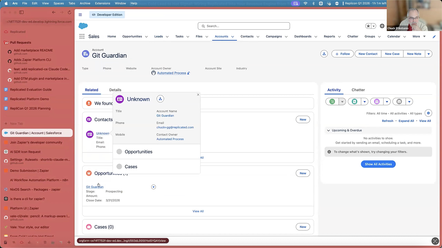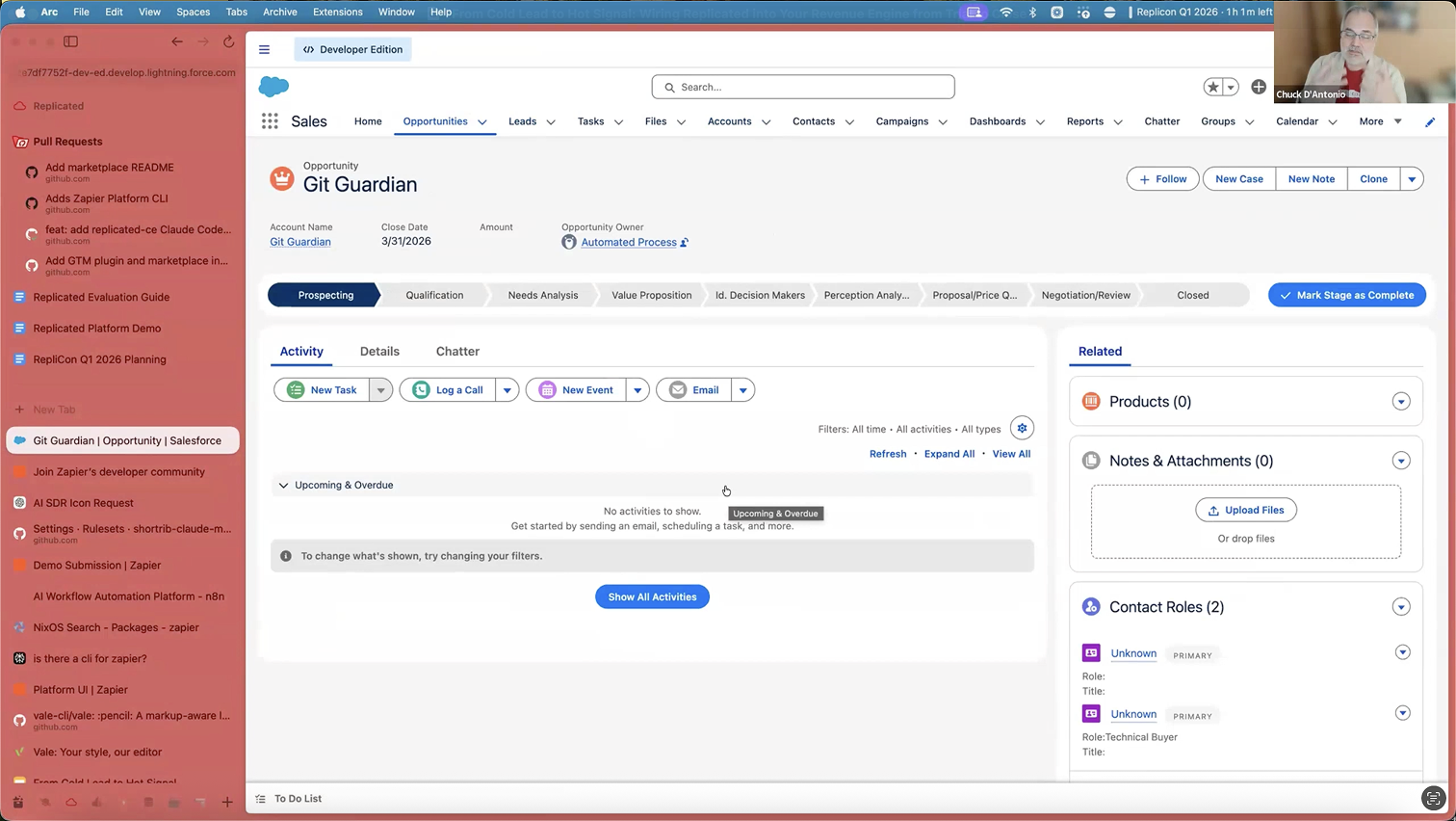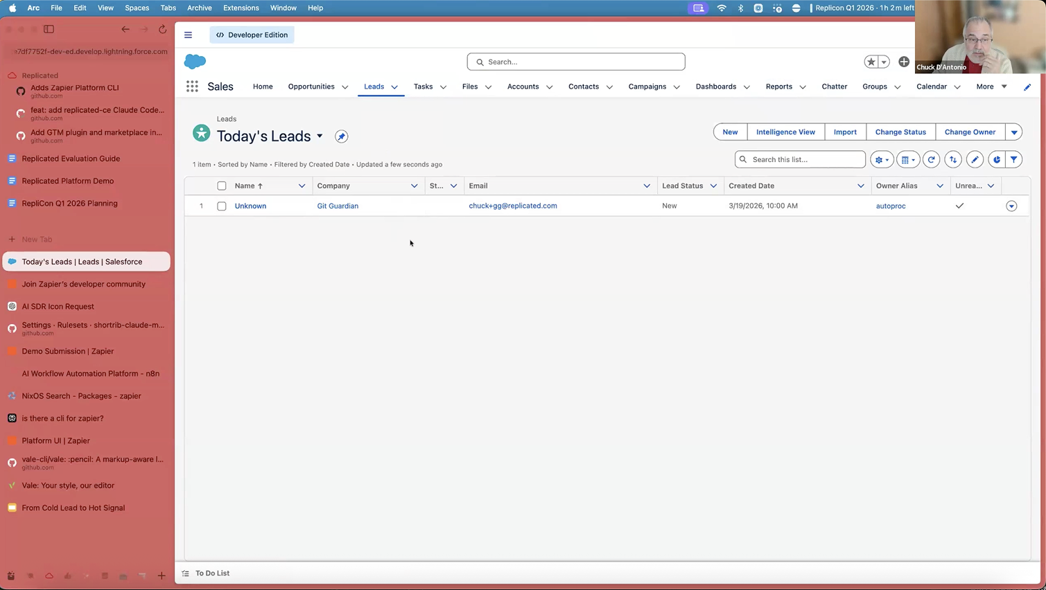 In the talk, Chuck showed how these events can be wired directly into a CRM, using Salesforce as an example.
