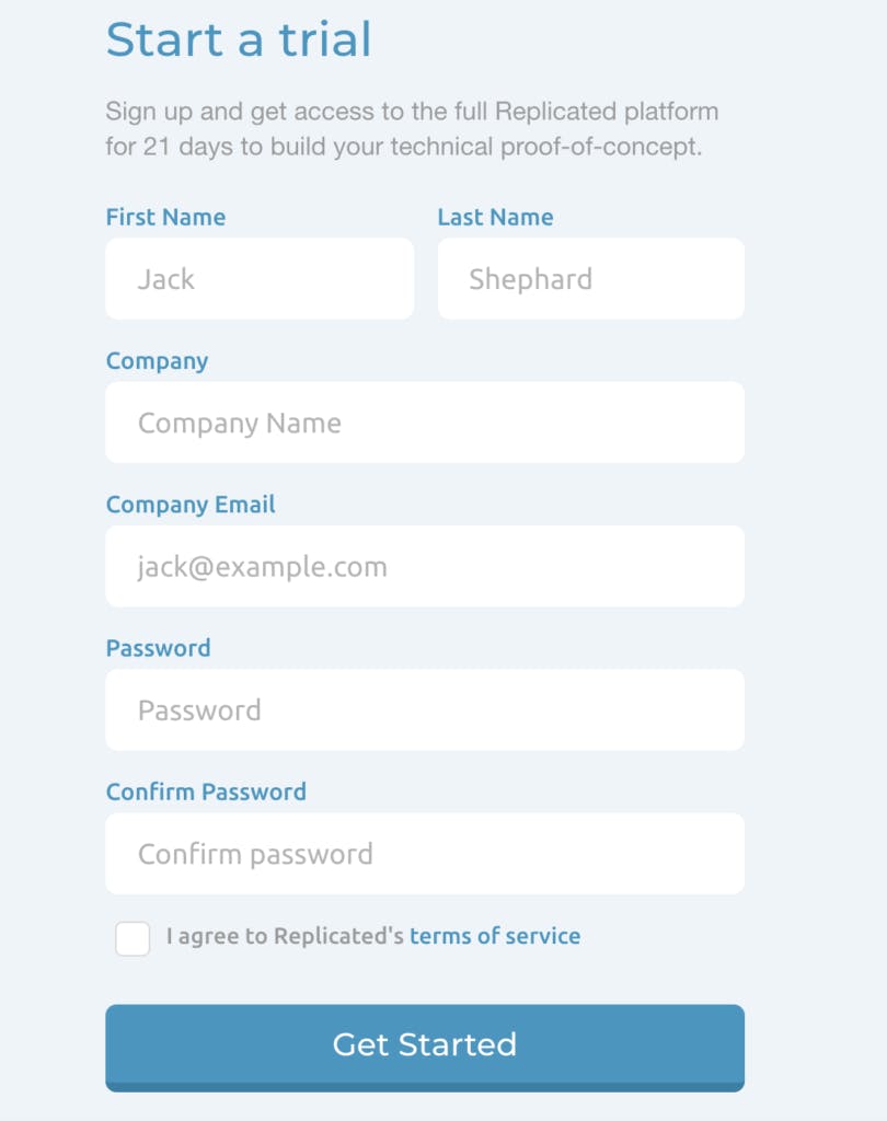 I’m glad you asked. The easiest way to get your hands on KOTS is to sign up for a 21-day free trial, which can be done over on the Replicated vendor website.