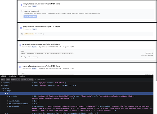Recent updates include real-time image scanning status, the ability to retry failed scans, improved visibility into where vulnerable images are referenced within an application, and access to the full scan output directly in the Vendor Portal.