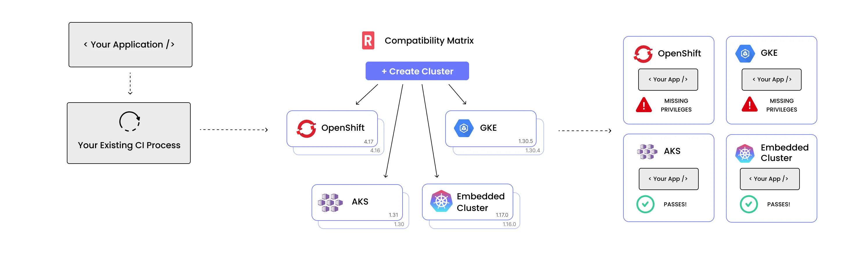 Validate compatibility with supported Kubernetes distributions before releasing a new version of your application.